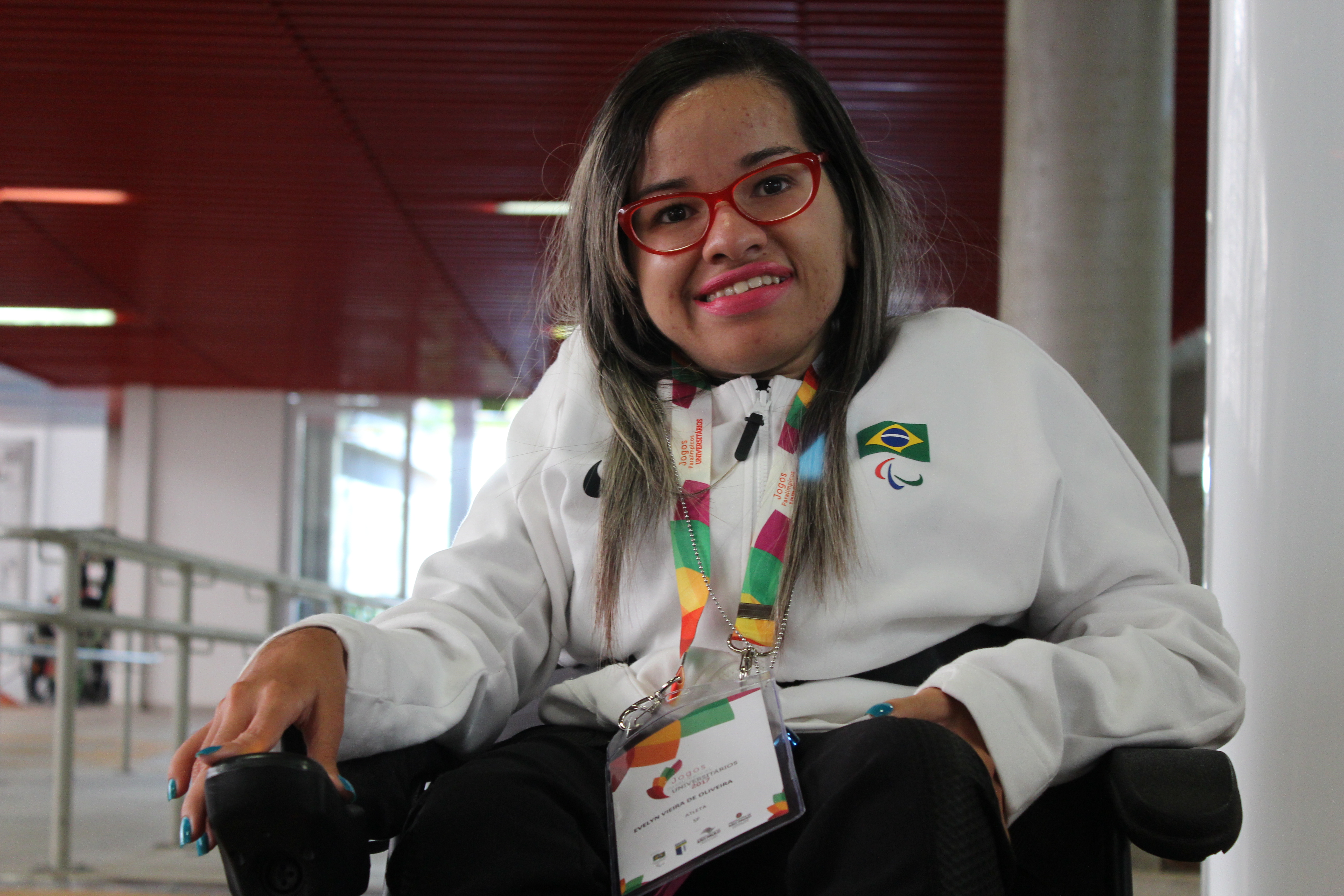 Conversamos durante os Jogos Paralimpicos Universitários, com a atleta da Bocha Evelyn Oliveira que compete na categoria BC3, a mesma categoria que a atleta Evani Calado compete. As duas foram medalhistas durante os Jogos Paralimpicos Rio 2016.